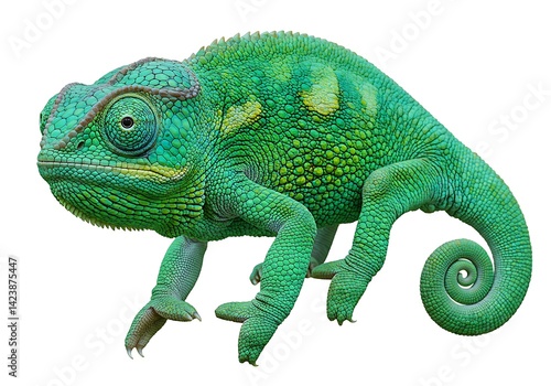 © Foysal, Obraz premium Green iguana on white background