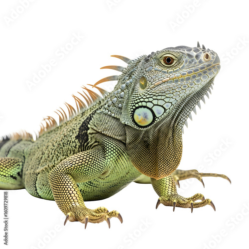 © sumarno, Fototapeta premium Green iguana portrait against black background