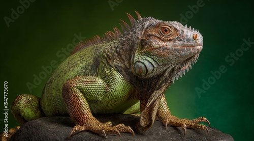 © John, Obraz premium Green Iguana Portrait Majestic Reptile in Striking Pose