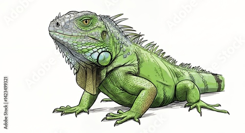 © AGUS, Obraz premium Green iguana reptile detailed illustration wildlife animal nature