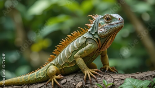 © Geser, Fototapeta premium Green iguana resting on a tree branch in the wild