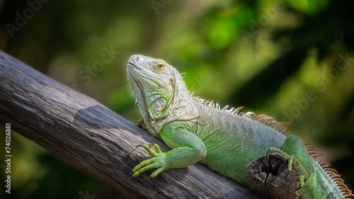 Fototapeta premium Green Iguana with green nature background