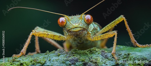 © harryaishi, Fototapeta premium Green Insect with Large Red Eyes
