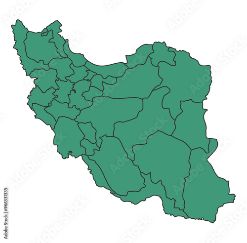 © Jayartiez, Obraz premium Green Iran simple map with states border outline vector