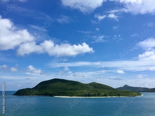 © kpoppie, Fototapeta premium Green island under blue sky in sunny day