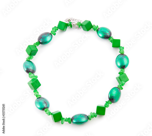 © Mus1, Obraz premium Green isolated beads over white background. Image.