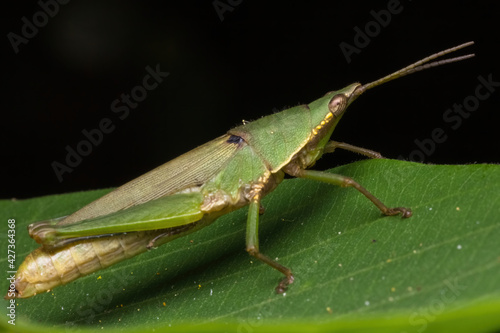 © ZAIRIAZMAL, Fototapeta premium green katydid standing on green leaf