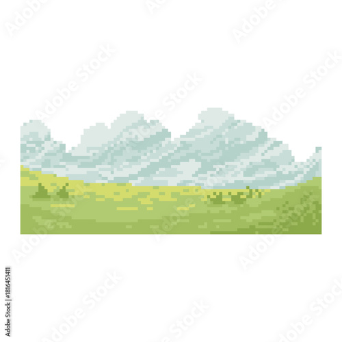 © Helixter, Fototapeta premium green land terrain pixel art