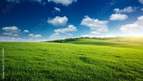 © Briar, Fototapeta premium Green Land With Blue Sky In Background