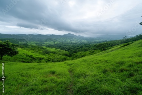 © Riya, Naklejka premium Green Landscape with Cloudy Sky