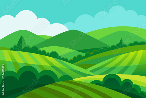 © SOHAG, Obraz premium green landscape with rolling terrain