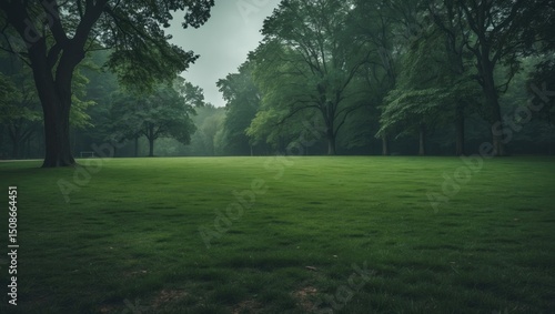 Obraz premium Green lawn in park with empty space for text.