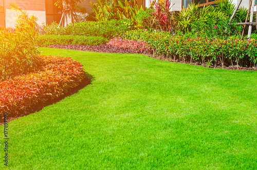 Obraz premium Green lawn, the front lawn for background,garden landscape design