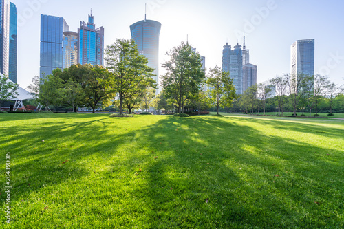Fototapeta premium green lawn with modern office building