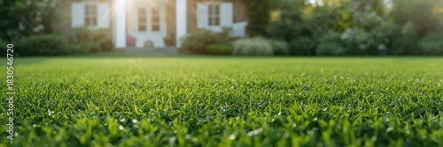 Fototapeta premium Green lawn with natural grass, weeds, and garden care activities, emphasizing...