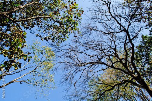 © Visanuwit, Fototapeta premium green leaf and blue skybackground