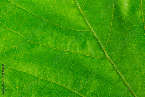 Obraz premium Green leaf background texture, flat top view close up macro