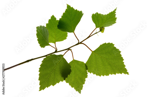© Liliia, Fototapeta premium Green leaf Birch tree isolated on white background.