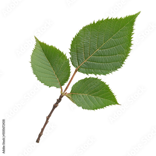 Fototapeta premium Green leaf branch, Fresh green leaves branch macro, isolated on transparent background