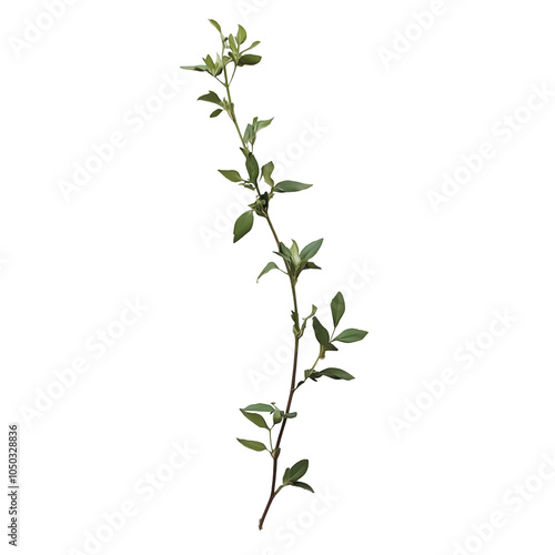 Fototapeta premium Green leaf branch isolated on transparent background, PNG