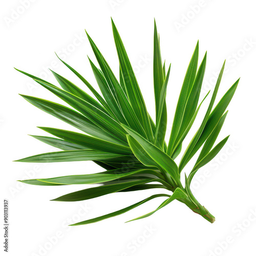 © JH45, Obraz premium Green Leaf Close-Up on White Background with Vivid Details and Fresh Appearance