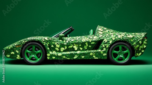 Naklejka premium Green Leaf Covered Convertible Sports Car, eco-friendly ,sustainable car