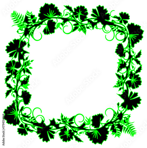 © Fitri, Fototapeta premium Green Leaf Frame PNG – Botanical Border Design with Vines and Ferns on Transparent Background