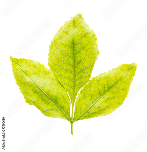 © schankz, Obraz premium Green leaf from a tree is isolated on a white background
