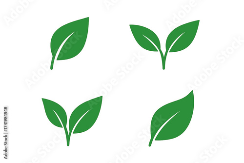 © Frida, Fototapeta premium Green leaf icon set. Eco friendly, vegan, and organic food symbol. Sprout and plant silhouette for environment, nature, and bio concepts. Vector logo illustration element.