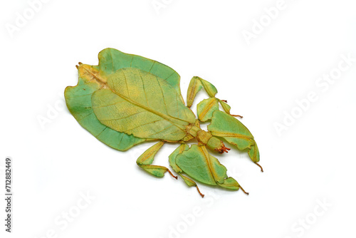 © Cheattha, Fototapeta premium Green leaf insect isolated on white background. Leaf insect (Phyllium bioculatum) or Walking leaves, Rare and protected