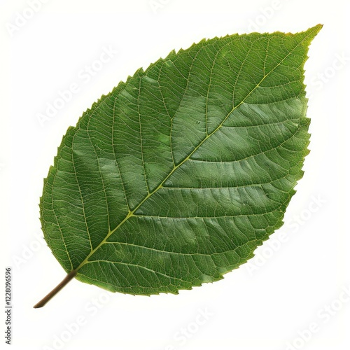 © nsit0108, Obraz premium Green leaf isolated on white background, displaying detailed venation and vibrant color