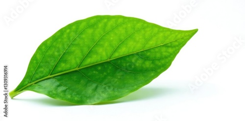 Obraz premium Green leaf isolated on white background, intricate details visible, foliage,...
