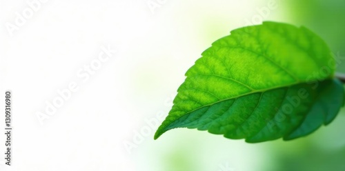 Fototapeta premium Green leaf isolated on white background with soft focus, closeup, foliage