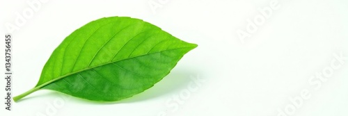 Fototapeta premium Green leaf isolated on white background with subtle texture, leaf, foliage