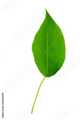 Obraz premium Green leaf isolated. Plum leaf on white background.