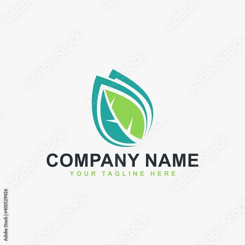 Fototapeta premium Green leaf logo design vector. Natural eco icon symbol.