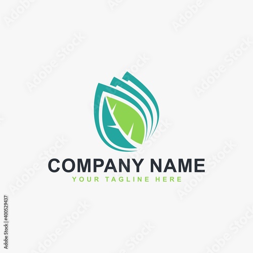Fototapeta premium Green leaf logo design vector. Natural eco icon symbol.