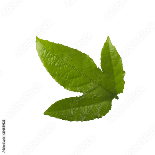 © lewal2010, Obraz premium green leaf of passion fruit isoalted on white background