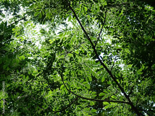 © srckomkrit, Fototapeta premium green leaf of tree with sunny