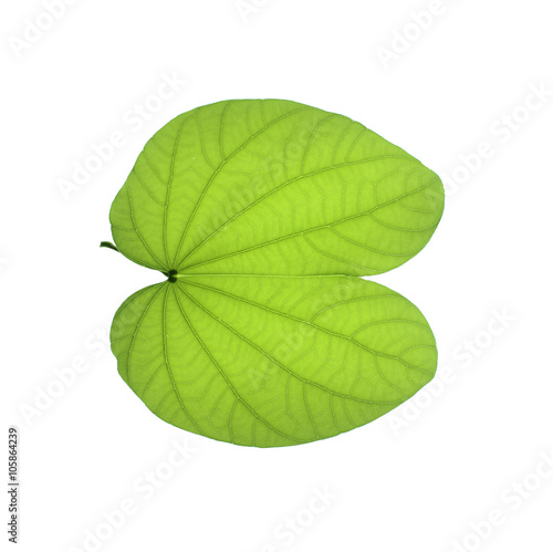 © jamroenjaiman, Fototapeta premium green leaf on a white background