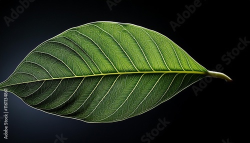 © ExploreAI, Obraz premium green leaf on black background