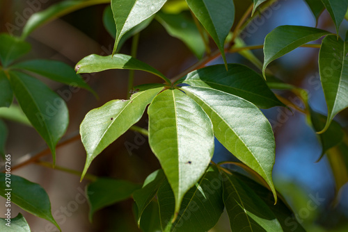 © faustasyan, Fototapeta premium Green leaf on blurred background