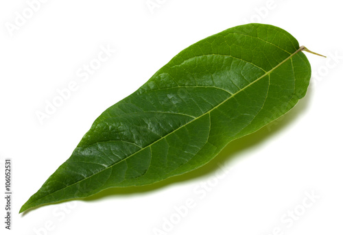 © BSANI, Fototapeta premium Green leaf on white