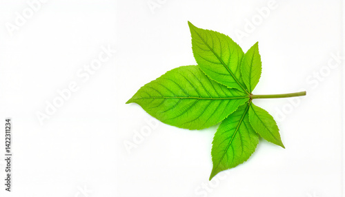 © Yuliya, Obraz premium Green leaf on white background