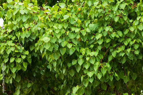 © Thinapob, Obraz premium Green leaf Pho leaf (Bo leaf) background in the forest bo tree is a leaf representing Buddhism in thailand.