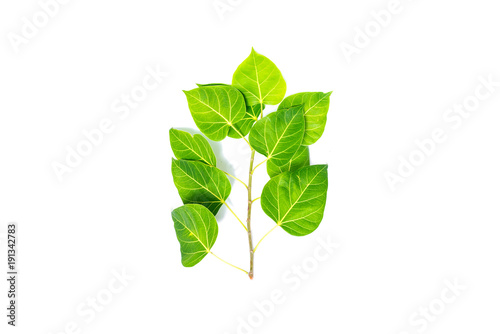 © noon@photo, Obraz premium Green leaf Pho leaf, (bo leaf,bothi leaf) solated on white background.