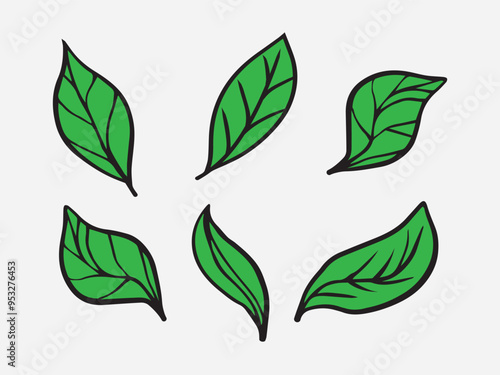 © MDATOWAR, Naklejka premium Green leaf set vector illustration