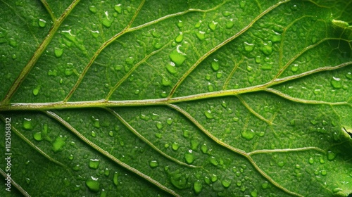 Fototapeta premium Green Leaf Surface Water Droplets Close Up