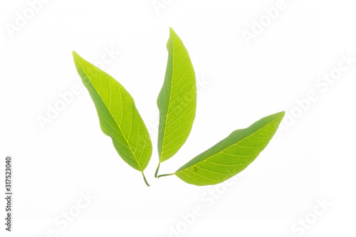 Obraz premium Green leaf texture white background