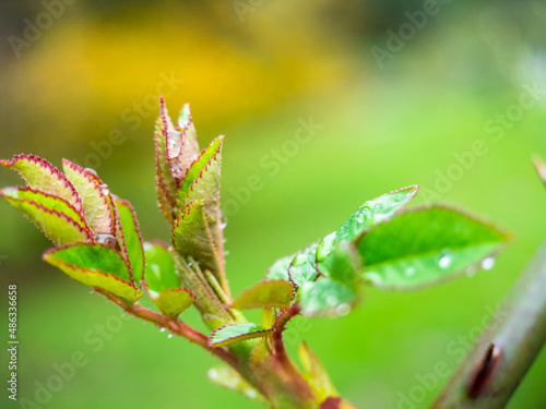 © hristoshanov, Fototapeta premium green leaf with drops of water
